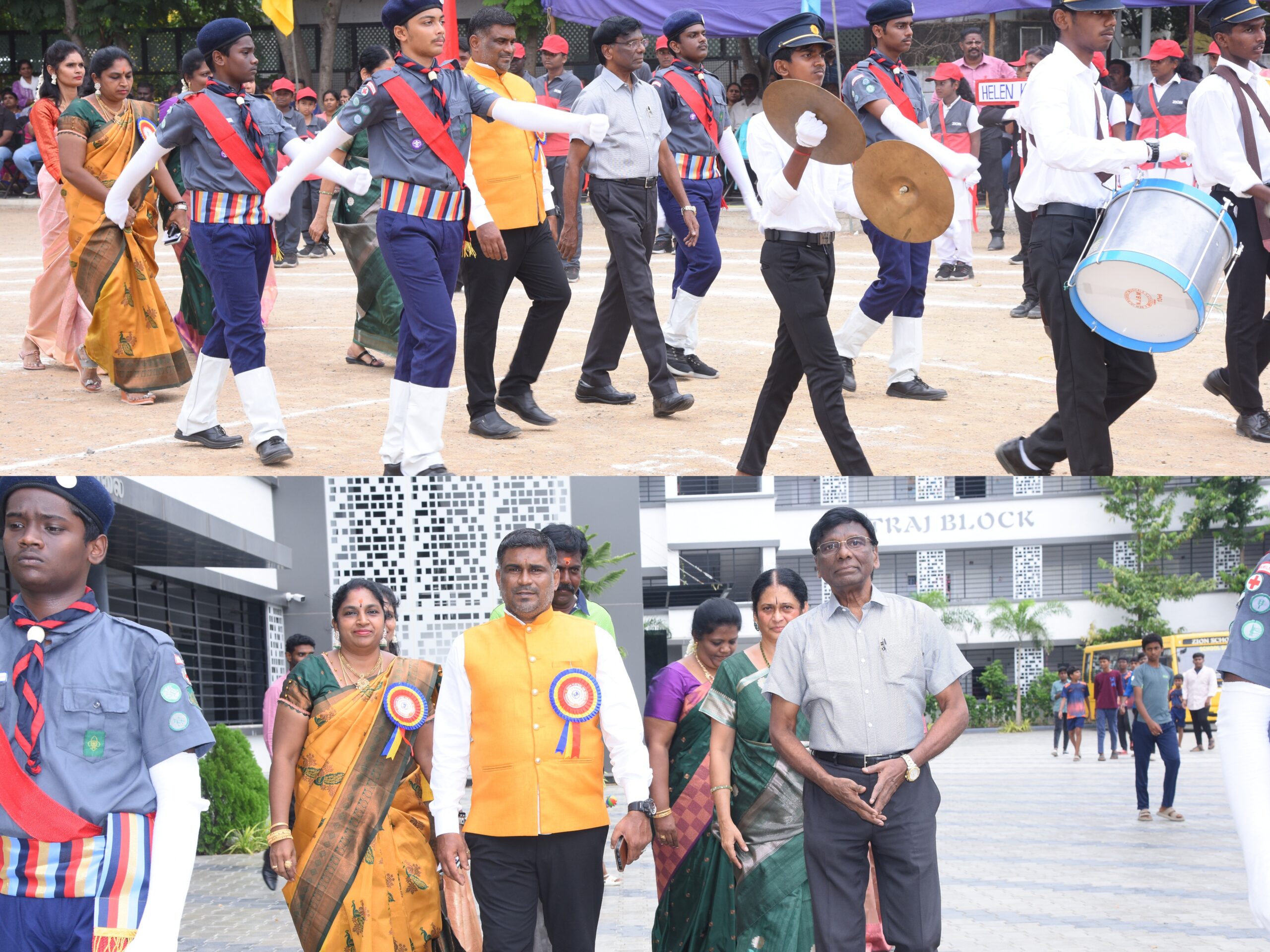 Zion Matriculation Higher Secondary School, Sembakkam proudly celebrated the 76th Republic Day with great enthusiasm and patriotic fervour. The celebration was aimed to instill a deep sense of patriotism in students and raise awareness about India’s freedom struggle, the Constitution, and its core values. The Chief Guest for the function was, Mr. A ANTONY JOACHIM JERRY, Inspector of Police (Otteri Police Station). The highlight of the occasion was the impressive march-past, featuring contingents from the four school houses, as well as members of the Junior Red Cross (JRC) and Bharat Scouts and Guides. The parade was led with discipline and grace by the School Pupil Leader, showcasing the commitment and dedication of the students.