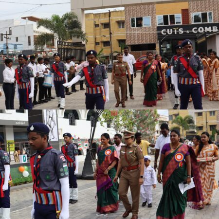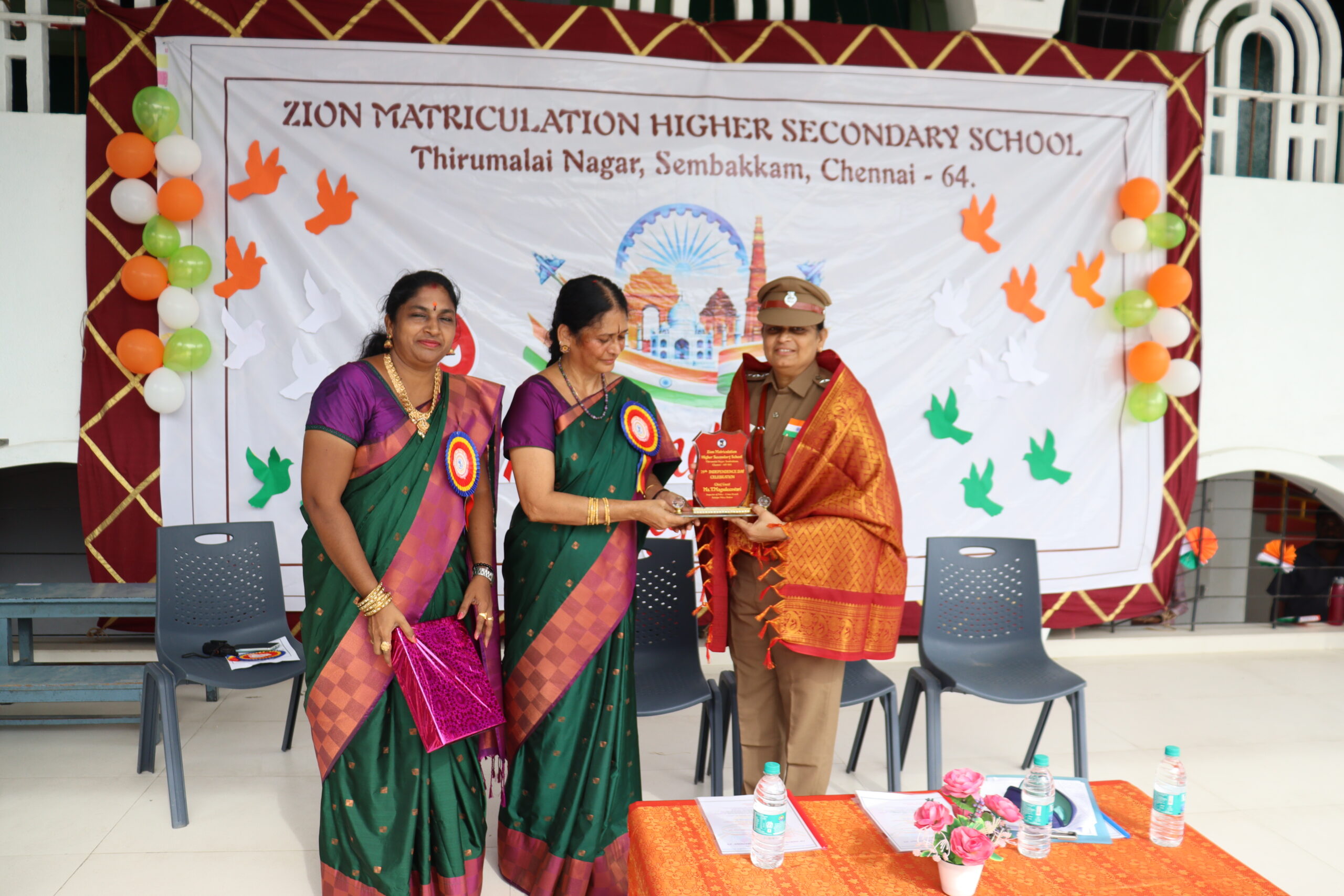 The Chief Guest who graced this year’s National Republic Day was the Sub Inspector of All Women’s Police Station, Chitlapakkam. She spoke on the safety and security of women and children. She also gave a demo of the app KAAVALAN SOS developed by Tamil Nadu Police Department for the people in need of police protection especially for the women and children.