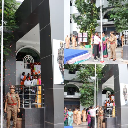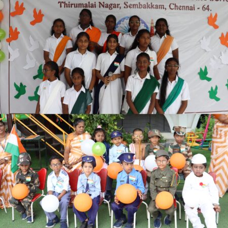 Independence Day was celebrated with great enthusiasm and respect at the school campus.The school was decorated with tricolor balloons and flags welcomed the eyes of all to the function. The Chief guest of the day was Tmt. Magudeeswari. T, Inspector of Police Chitlapakkam honoured the event by hoisting the flag and witnessing the colorful march past.
