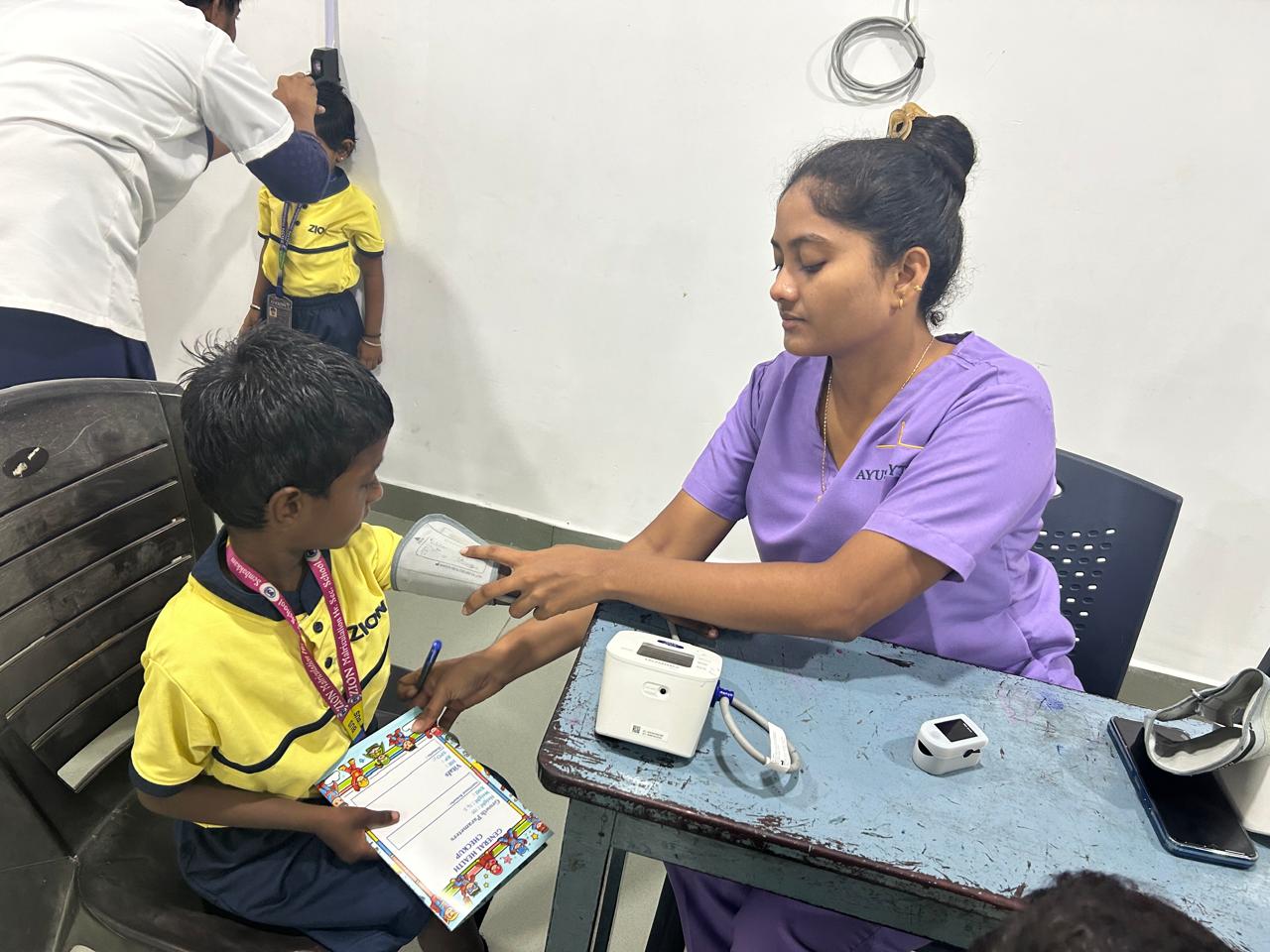 AYUSH MYTHRI is a holistic health care program designed for the students of Alwin and Zion group of schools to cater to the complete wellness needs of each child, rendered by a team of mult-speciality doctors. Program Highlights: 1. Comprehensive health screening of vision, ENT, dental, nutritional, menstrual, general and systemic pediatric concerns 2. Age-specific nutrition chart for all students to improve understanding of nutritional requirement 3. Habit tracker sheets to encourage primary school students for practicing healthy habits 4. On-site multi speciality doctors consultation for referred students offering further guidance and care 5. An annual school health day event featuring a panelist of multi speciality doctors addressing pediatric common concerns and provide solutions 6. Menstrual hygiene awareness talk sessions for educating female students of high and higher secondary school 7. Stress relief and rejuvenating mental well-being session for board exam students.