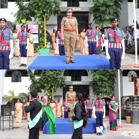 Our school commemorated the 79th Independence Day with great zeal, instilling in everyone a sense of patriotism and unity while remembering the valiant sacrifices of our freedom fighters. The Chief Guest for the day was Mrs. T MAGUDEESWARI ( Inspector of Police - Crime Branch). The celebration commenced with the hoisting of the National Flag by the chief guest, after which a grand March-past was conducted. The parade was led by the School Pupil Leader, Assistant School Pupil Leader, Sports Secretary, Assistant Sports Secretary, and the Captains and Vice-Captains, along with contingents representing all four houses and various clubs. Following the parade, our Principal addressed the gathering, paying homage to the freedom fighters and inspiring the students to cherish India’s heritage and work towards the nation’s progress. The event continued with a series of vibrant cultural programmes, including patriotic songs, dances, and performances that reflected the spirit of independence. The celebration concluded with the rendition of the National Anthem, filling everyone with pride and reverence for the nation.