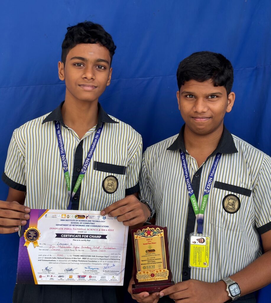 of X B and of X C secured second place and won a cash prize of Rs. 5,000 in the “YOUNG INNOVATORS FOR 4.0” (Prototype Expo / Innovators Fair) under the title “Prototype Expo” as part of the INSIF 1.0 – Innovate India: National Science & Idea Fest, organized by the Department of Networking and Communications, School of Computing, SRM Institute of Science and Technology (SRMIST), Kattankulathur.